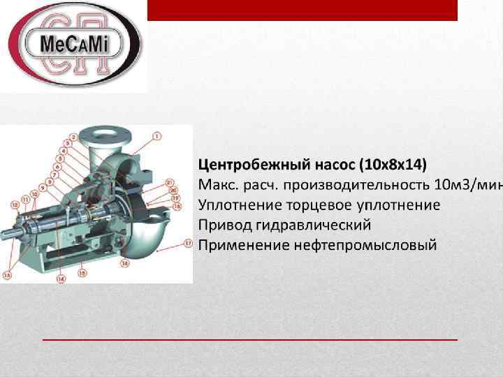 Наименование параметра Значение параметра Максимальное рабочее давление 1000 атм (15 000 psi) Выходная мощность 1800 л. с. (1340 к. W) Максимальная производительность 2, 46 м 3 в минуту ( 15, 47 bpm) Весь 33 000 кг Силовая установка САТ 3512, 2250 л. с. с воздушным пуском Коробка передач Allison S 9820 M Насосная установка OFM 2500 Q, 4` Плунжер Назначение: Закачка рабочих жидкостей и смесей в скважину в составе комплекса для гидроразрывов пластов или автономно. Обеспечение требуемых параметров по производительности и развиваемому давлению при проведении ГРП или других работ на нефтяных и газовых скважинах. Агрегат автономен, не нуждается во внешних источниках энергии.