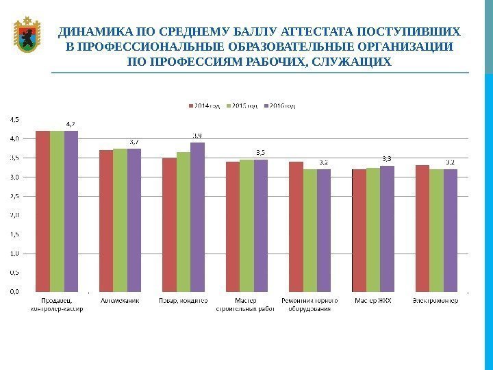 ДИНАМИКА ПО СРЕДНЕМУ БАЛЛУ АТТЕСТАТА ПОСТУПИВШИХ В ПРОФЕССИОНАЛЬНЫЕ ОБРАЗОВАТЕЛЬНЫЕ ОРГАНИЗАЦИИ ПО ПРОФЕССИЯМ РАБОЧИХ, СЛУЖАЩИХ