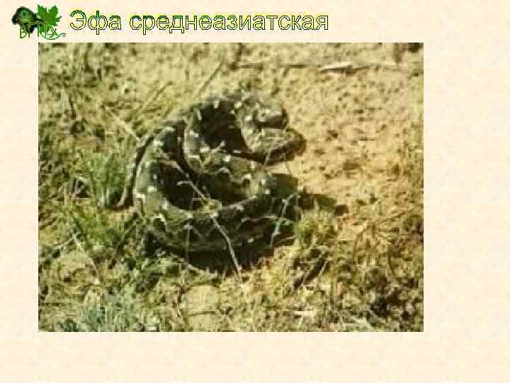 Среднеазиатская эфа — типичный обитатель песчаных пустынь. В пределах бывшего СССР ее можно встретить в республиках Средней Азии. Характерная черта эфы — «боковой ход» — при движении змея так изгибает тело, что кажется, будто она движется не вперед, а вбок. Длина эфы обычно не Типична для эфы и превышает 0, 5 м, более крупные своеобразная оборонительная (до 90 см) особи встречаются поза — голова в окружении двух очень редко. Несмотря на полуколец. небольшие размеры, укус эфы очень опасен.