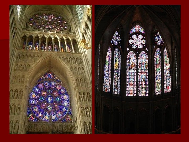 C появлением крестового свода, системы колонн, аркбутанов и контрфорсов, соборы приобрели вид громадных ажурных фантастических сооружений. Это нововведение позволило сильно облегчить конструкцию за счет перераспределения нагрузок, а стены превратились в простую легкую «оболочку» , их толщина более не влияла на общую несущую способность здания, что позволило проделать много окон, и стенная роспись, за неимением стен, уступила витражному искусству и скульптуре.