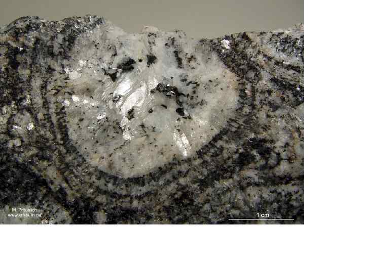 расслоенность в луяврите, показывающая обогащенные нефелином слои (белое) и слои с нормальным арфедсонитовым луявритом (серое).