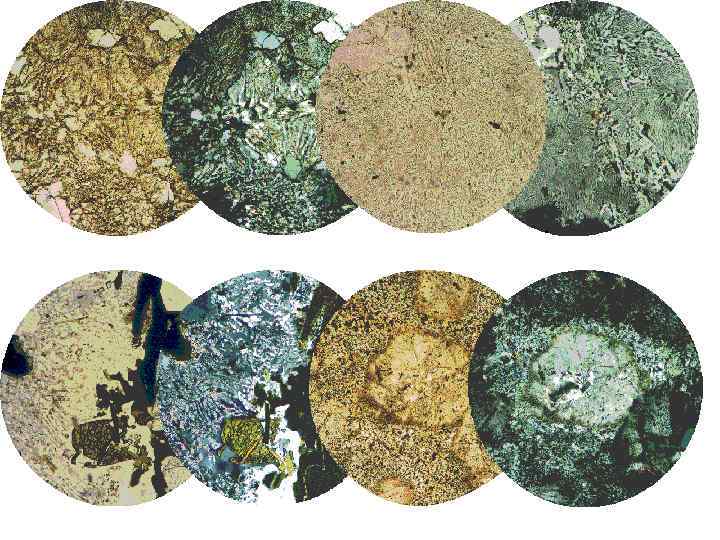 Сопоставление базальтов и андезитов ОМ Порода вкрапленники Базальт Cpx (Aug и/или Pig), Pl относи тельно мелкие основные слабо зональные, Ol, редко гиперстен, еще реже базальтическая Hbl, редко Bt андезит Pl резко зональ ный, Cpx – Aug, Pig, Opx – гиперстен, базальтическая Hbl и Bt чаще чем в базальтах, гиперстен имеет укороченный габитус, Aug – вытянутый, Ol не характерен Состав структура Структура породы Pl: Cpx=1: 1, Cpx (Aug и/или Pig), стекло если присутствует, то в подчиненном количестве Без стекла: Микроофитовая, микропойкилоофитовая, микродолеритовая. Со стеклом: Интерсертальная, Толейитовая, Гиалопилитовая, пилотакиситовая (Pl крупнее чем в андезитах), гиалиновая (тахилит) Афонитовые, афировые чаще чем порфировые, сериально порфировые (несколько генераций вкрапленников) Гиалопилитовая (андезитовая), пилотакситовая, гиалиновая. Чаще порфировые чем афировые ØPl, стекло, Px если есть, то его мало Ø без стекла редкость