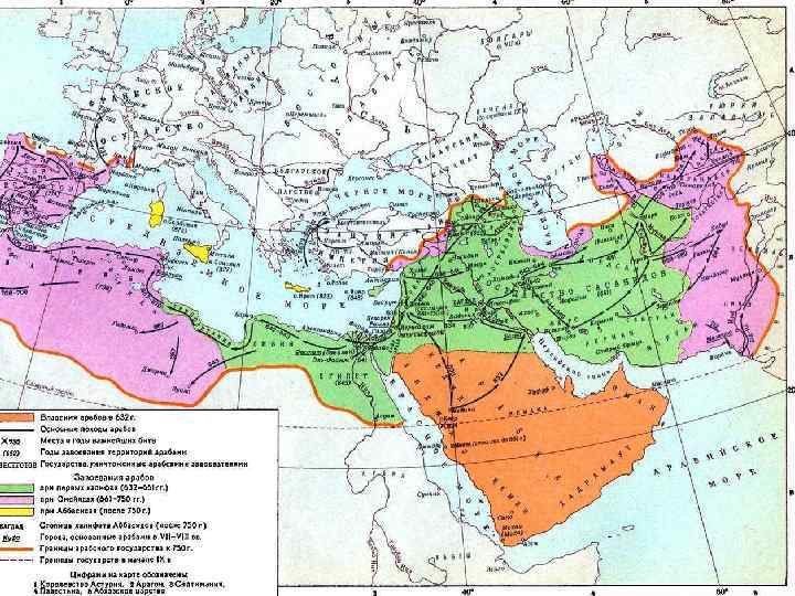 Завоевания арабов • Сирия, Палестина, Египет, Иран, Северная Африка, Армения, часть Грузии, Испания, часть Средней Азии 945 г. – распад халифата