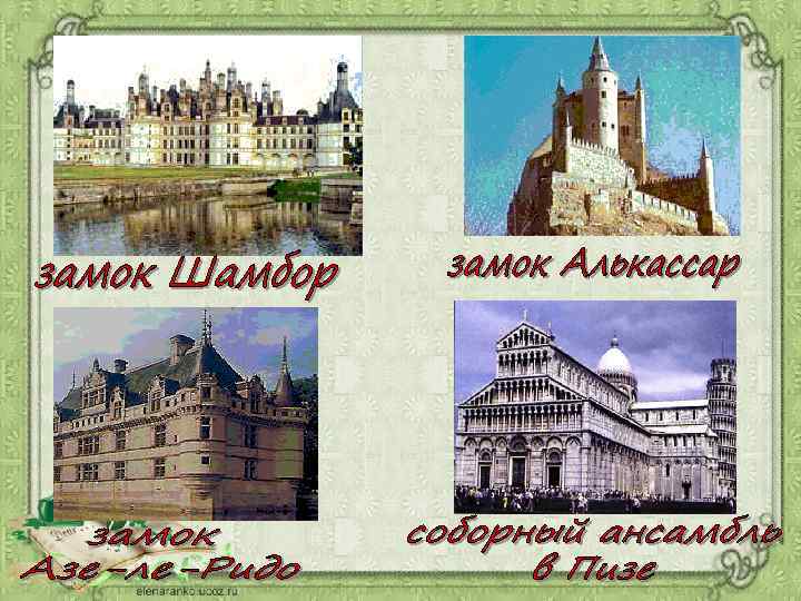 Архитектура Средневековья Основные стили архитектуры того времени: • Романский стиль – мощные стены, узкие окна, протяженные по горизонтали. (Замки и крепости)