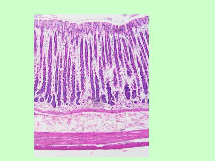 КАРДИАЛЬНЫЕ ЖЕЛЕЗЫ • Трубчатые, сильно разветвленные концевые отделы, часто имеют широкий просвет. • Слизистые клетки (мукоидный секрет, выделяет бикарбонаты, КСl, Na. Cl). • Встречаются отдельные главные, париетальные, эндокринные.