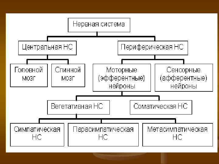 Вегетативный отдел (autonomous nervous system • Управляет сферой внесознательного • В значительной мере независим от сознания • Регулировка процессов, обеспечивающих сознательную деятельность энергией • Симпатический, парасимпатический и метасимпатический отделы