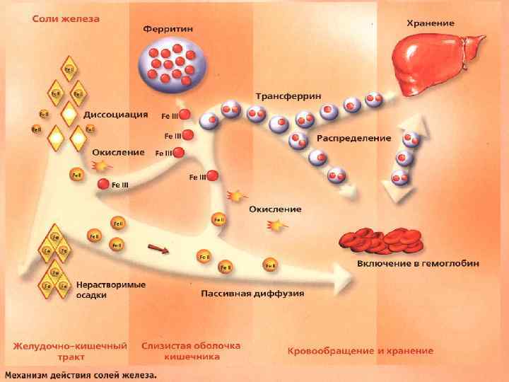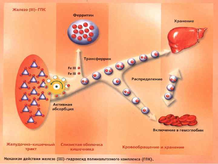 Показания к назначению препаратов железа n n n n ДЕФИЦИТ ЖЕЛЕЗА В ОРГАНИЗМЕ, СВЯЗАННЫЙ С: - недостаточным поступлением его с пищей - хронической потерей крови - беременностью (суммарная потребность в железе матери и плода составляет 1000 мг, главным образом во второй половине беременности) - сниженным всасыванием железа с пищей при заболеваниях жкт - при низком уровне железа в депо (недоношенные дети; дети. долго находящиеся на грудном вскармливании) - повышенной потребностью в синтезе эритроцитов при лечении больных пернициозной анемией В СТОМАТОЛОГИИ: для комплексного лечения множественного кариеса и его профилактики