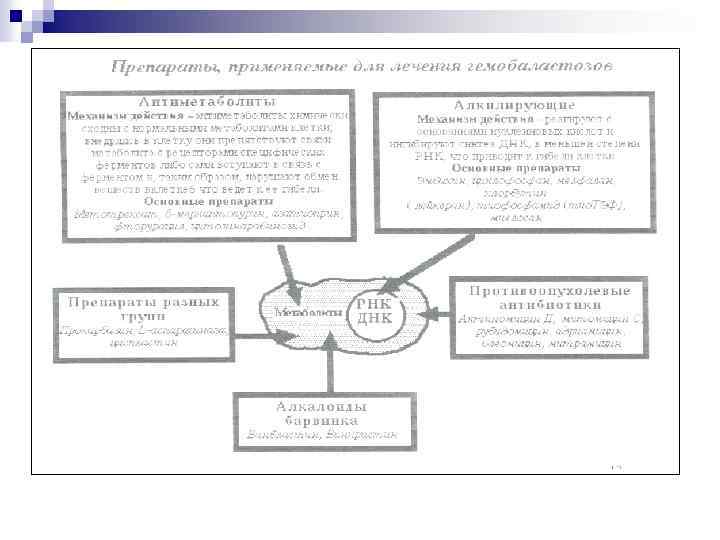 Препараты разных групп n Препараты растительного происхождения Механизм: антимитотическая активность Винбластин (Розевин) при лимфогранулематозе Винкристин острый лейкоз и др. гемобластозы n Другие препараты Прокарбазин лимфома, истинная полицитемия L –аспарагиназа острый лимфобластный лейкоз, рецидивирующий острый миелобластный лейкоз,