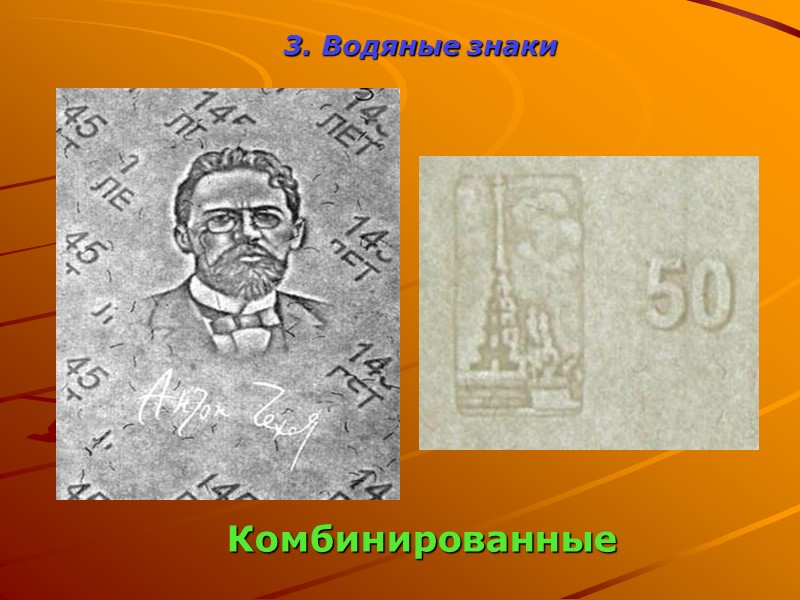 Комбинированные — состоящие из различных сочетаний водяных знаков по расположению и оптическим характеристикам 3. Водяные знаки