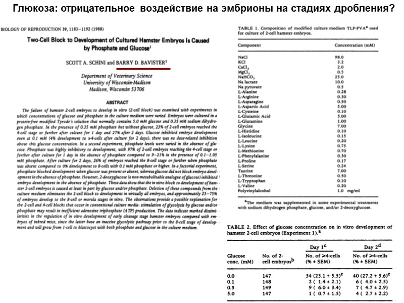 Глюкоза: отрицательное воздействие на эмбрионы на стадиях дробления?