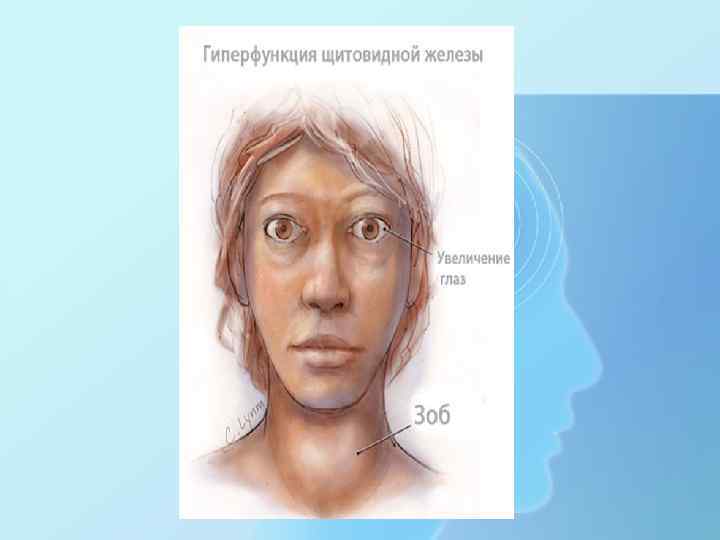 Болезнь Грейвса (диффузный токсический зоб) • Системное аутоиммунное заболевание, развивающееся вследствие выработки антител к рецепторам ТТГ, клинически проявляющееся поражением щитовидной железы с развитием гипертиреоза часто в сочетании с экстратиреоидной патологией (эндокринной офтальмопатией, претибиальной микседемой, акропатией)