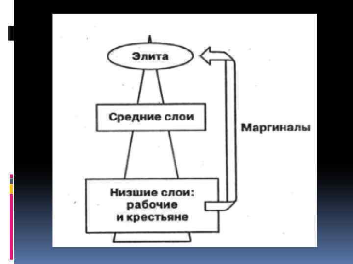 Теория маргиналов и маргинальных общностей была выдвинута в первой четверти XX в. одним из основателей чикагской социологической школы (США) Р. Э. Парком, а ее социально-психологические аспекты развиты в 30— 40 -х гг. Э. Стоунквистом. Но еще К. Маркс рассматривал проблемы социального деклассирования и его последствий, а М. Вебер прямо сделал вывод о том, что движение общества начинается тогда, когда маргинальные слои организовываются в некую социальную силу (общность) и дают толчок социальным изменениям — революциям или реформам.