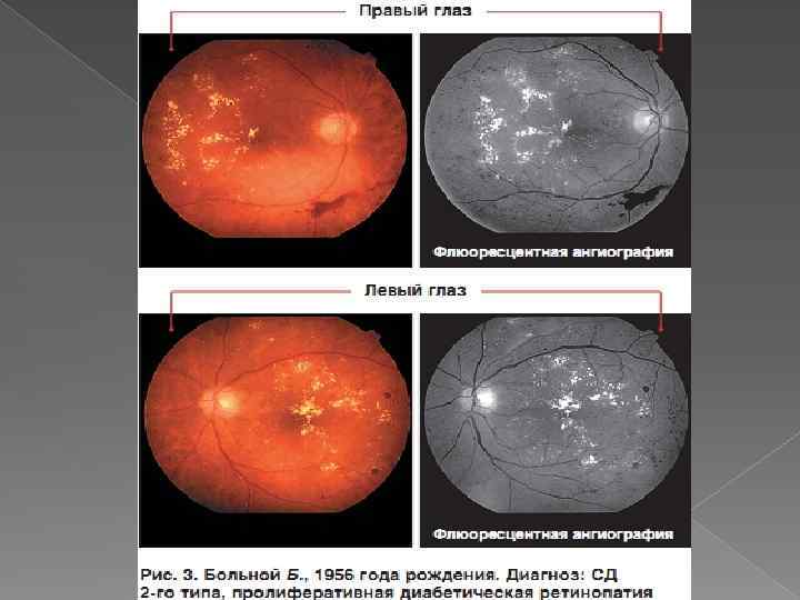 В больном глазу свечение флюоресцеина, трансформируясь, может приобретать следующие формы: гиперфлюоресценции; гипогиперфлюоресцен ции.