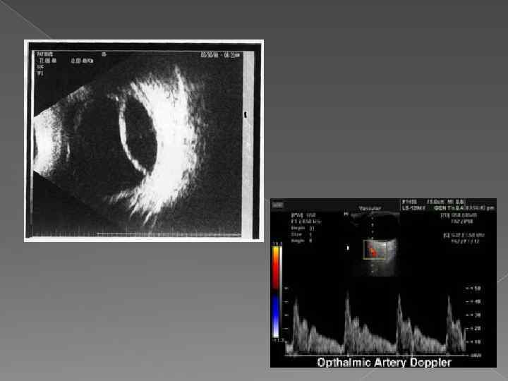 Эхография Используется в диагностике отслойки сетчатки, внутриглазных опухолей, инородных тел и т. д. Эхографическое исследование глаза проводят контактным или иммерсионным способами.