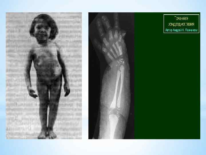 * *Под точечной хондродисплазией (ТХ) подразумевается группа скелетных дисплазий, для которых характерно точечное обызвествление эпифизов как в зонах ростковых пластинок всех участков скелета, так и в параартикулярных участках. *ТХ включает по крайней мере три генетические формы заболевания: наиболее тяжелую аутосомнорецессивную ризомелическую форму; тяжело протекающую аутосомнодоминантную форму (Конради - Хюннермана) и выделенную сравнительно недавно более слабую Хсцепленную рецессивную форму.