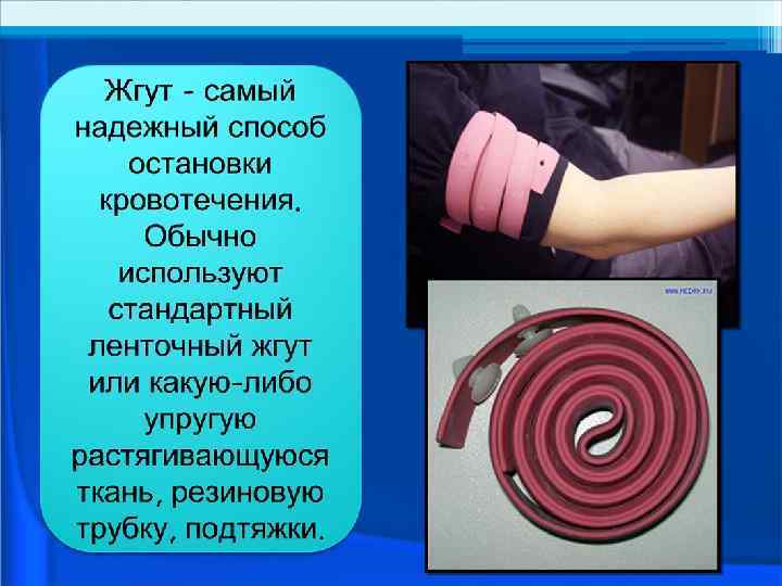 В качестве импровизированного жгута можно использовать ремень, сложив его соответствующим образом