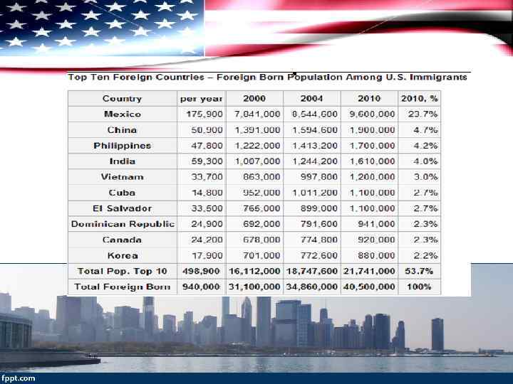Зовнішня торгівля Динаміка імпорту та експорту товарів та послуг, млн. дол. . сша 2006 Імпорт Експорт 1918077 1025967 2007 2020403 1148199 2008 2169487 1287442 2009 1605296 1056043 2010 1969184 1278263 Країни-партнери США з експорту: Канада 23%, Японія 10, 3%, Мексика 10, 1%, Великобританія 5, 2%, Німеччина 3, 7%, Республіка Корея 3, 4%, Тайвань 3, 2%. Країни - партнери США з імпорту: Канада 19%, Японія 17, 4%, Мексика 7, 3%, Китай 5, 6%, Німеччина 4, 6%, Тайвань 3, 9%, Великобританія 3, 6% Динаміка імпорту та експорту товарів та послуг, млн. дол. . сша