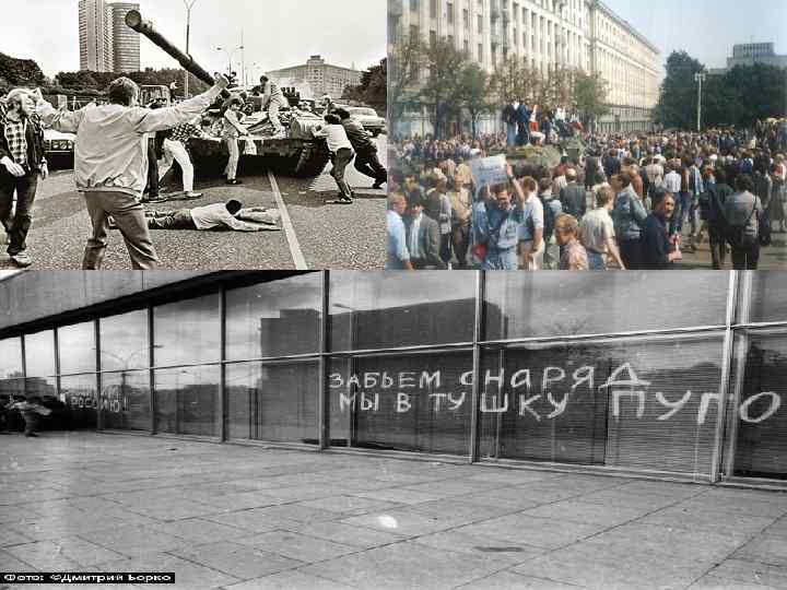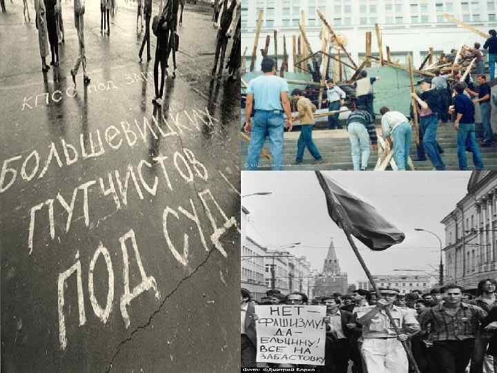 Последствия ГКЧП (путча) • 24 августа 1991 г. – М. С. Горбачев объявил об отставке с поста СССР и призвал КПСС самораспуститься. • 6 ноября 1991 г. – указ Б. Н. Ельцина о запрете деятельности КПСС на территории РСФСР. • Роспуск Президентом СССР, высших государственных органов СССР.