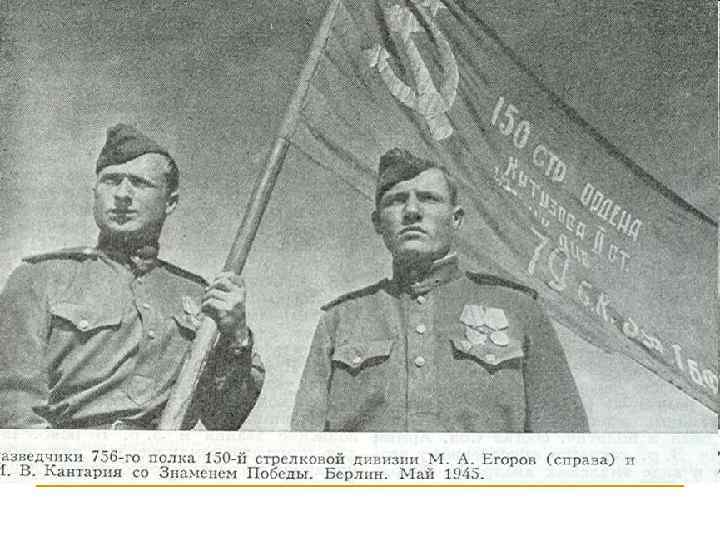 4. Освобождение Европы от фашизма 30 апреля 1945 г. бойцы 150 -й стрелковой дивизии М. А. Егоров и М. В. Кантария водрузили над Рейхстагом Красное знамя Победы. В тот же день покончил жизнь самоубийством Гитлер. Берлинский гарнизон капитулировал.