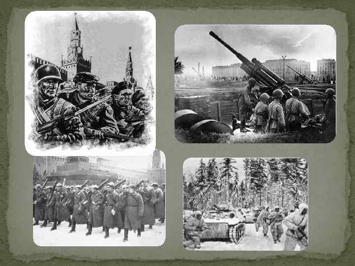 Парад на Красной площади 7 ноября 1941 года — военный парад в честь 24 -й годовщины Октябрьской революции, проведенный во время Московской битвы. Он имел огромное значение по поднятию морального духа армии и всей страны, показав всему миру, что Москва не сдаётся и боевой дух армии не сломлен. 5 декабря 1941 года Началось контрнаступление советских войск под Москвой. Калининская наступательная операция войск.