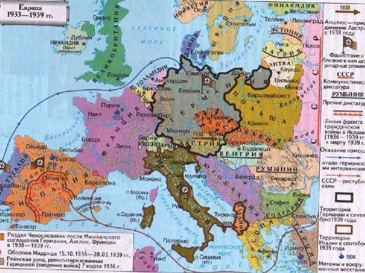 Возникновение очагов военной опасности в Азии и Европе. 1931 г. – под предлогом борьбы с революционным движением в Китае при нейтралитете США и Англии Япония ввела войска в Маньчжурию; 1932 г. – на территории Маньчжурии создано марионеточное государство Маньчжоу-Го; 1933 г. - Япония захватила всю Маньчжурию, её войска выдвинулись на границу СССР и Монголии; 1933 г. – приход фашистской партии во главе с А. Гитлером к власти в Германии. Советско-германское сотрудничество закончено. СССР, не имея ни одного союзника среди ведущих стран мира, обрёл двух противников (Германию и Японию), которые откровенно декларировали антикоммунизм в качестве основной своей политики.