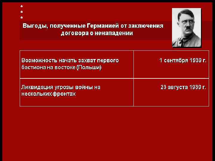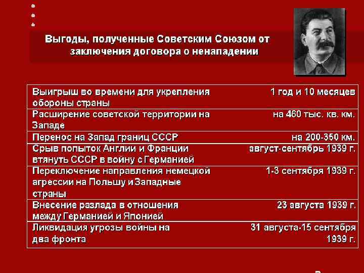 ГОДЫ СОДЕРЖАНИЕ 1922 -1933 Прогерманская ориентация советской внешней политики в целях противодействия «главным гг. потенциальным противникам – Англии и Франции» . Германия представлялась лидерам партии большевиков страной будущей пролетарской революции, а Великобритания и Франция – потенциальными врагами. Переориентация советской внешней политики на 1933 страны западной демократии. Предпринимаются 1939 гг. попытки организации единого антифашистского фронта в Европе. Начало нового сближения с Германией. 1939 Подписание пакта о ненападении и договора о 1940 гг. дружбе и границах