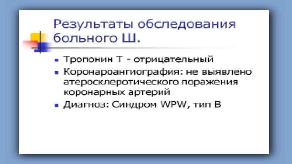 Некоронарное повышение уровня ТРОПОНИНА в крови • • Хроническая и острая почечная дисфункция • • Тяжелая застойная сердечная недостаточность — острая и хроническая • • Гипертонический криз • • Тахи- или брадиаритмии • • ТЭЛА, тяжелая легочная гипертония • миокардит • • Острые неврологические заболевания, включая инсульт и субарахноидальное кровотечение • • Расслоение стенки аорты, порок аортального клапана или кардиомиопатия • • Ушиб сердца, аблация, стимуляция, кардиоверсия или биопсия миокарда • • Гипотиреоз • • Инфильтративные заболевания, в том числе амилоидоз, гемохроматоз, саркоидоз, склеродермия • • Токсическое действие лекарств (адриамицин, 5 -фторурацил, герцептин, змеиный яд) • • Ожоги (>30% площади поверхности тела) • Рабдомиолиз • • Пациенты в критическом состоянии (особенно дыхательная недостаточность или сепсис)