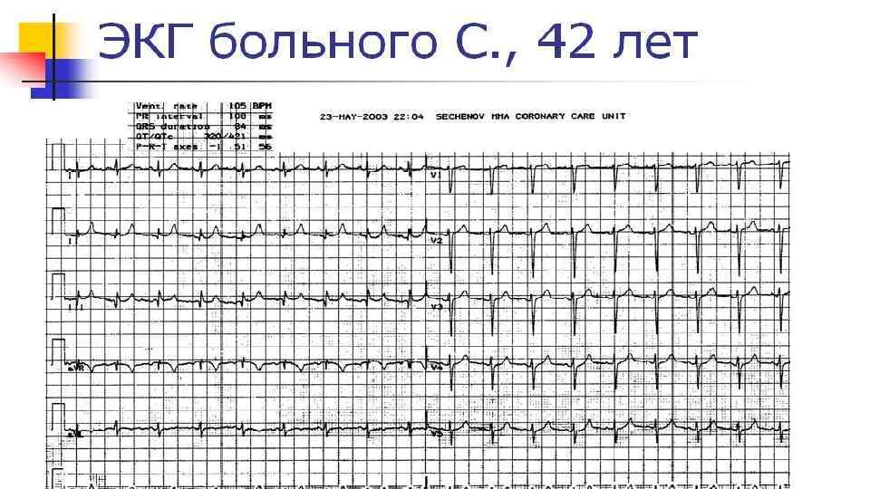ПОДЬЕМ ST-СЕГМЕНТА ВАРИАНТ НОРМЫ • У 90 -93% здоровых мужчин в молодом возрасте на ЭКГ выявляется подьем ST от 1 до 3 мм в отведениях V 1 -4 • у 20% женщин -независимо от возраста в отведениях V 1 -4. • С возрастом частота этих изменений среди мужчин уменьшается и у лиц 70 лет возраста отмечается в 30% случаев R/S 1 в отведении V 1 или V 2. Встречается внорме, при гипертрофии ПЖ
