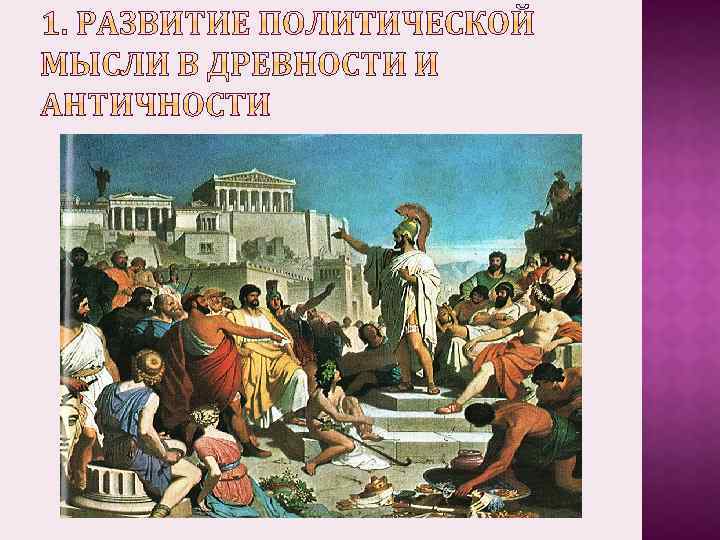 1. Развитие политической мысли в древности и античности 2. Политические учения средневековья 3. Политическая мысль в период Возрождения 4. Развитие политического знания в Новое время 5. Основные направления и школы политической мысли XIX XX вв.