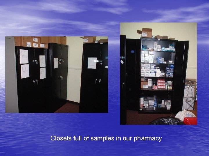 Closets full of samples in our pharmacy