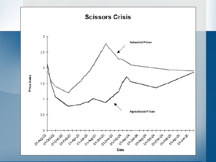 Back in the Economic Sphere: Conspicuous Consumption • Some people were making huge profits! – Nepmen – Conspicuously spending their new wealth • Cars, drink, fashion, jewellery, clubs, brothels • Get rich quick wanted to show off their wealth! – Old bourgeoisie had been more subtle! • Corruption was endemic – Communist party officials were often complicit in allowing Nepmen into and out of cities • Old time communists becoming more concerned • Scissors Crisis of 1923 – Industrial Prices rose as industrial production fell behind agricultural production – Therefore peasants began hoarding produce so that prices would rise • Creating an artificial shortage – so prices did rise! – Highly inflationary – Considered capitalist exploitation by Marxists
