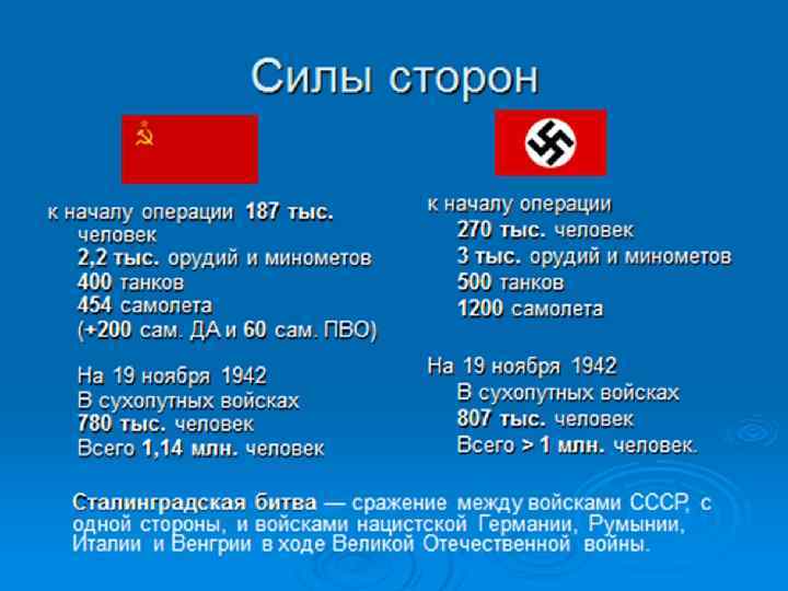 Контрнаступление советских войск под Сталинградом 19 ноября утром войска Юго. Западного и Донского фронтов объединенным мощным ударом прорвали оборону немецкой армии. 23 ноября передовые танковые части Сталинградского фронта вошли в район хутора Советский, где встретились с частями Юго. Западного фронта, замкнув кольцо окружения Сталинградской группировки противника. Операция «Уран»