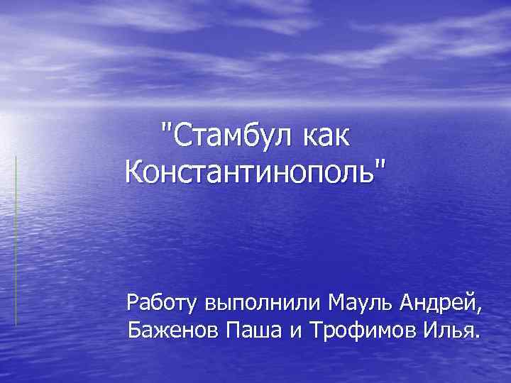 "Стамбул как Константинополь" Работу выполнили Мауль Андрей, Баженов Паша и Трофимов Илья.