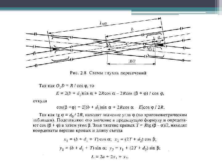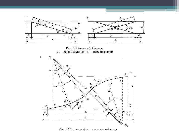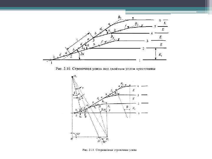 В зависимости от конструкции различают стрелочные улицы: • простейшие под углом крестовины; • простейшие, расположенные на основном пути; • стрелочные улицы под углом 2 а и За; • сокращенные стрелочные улицы; • веерные стрелочные улицы. • В простейшей улице под углом крестовины а (рис. 2. 9, а) определяют: