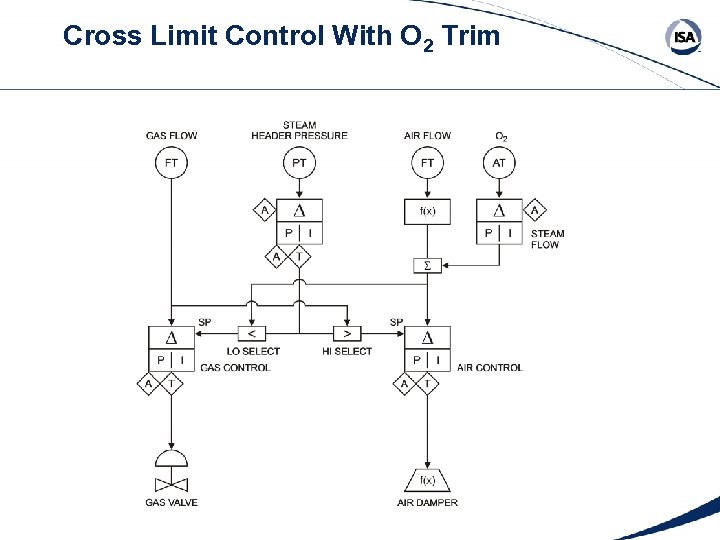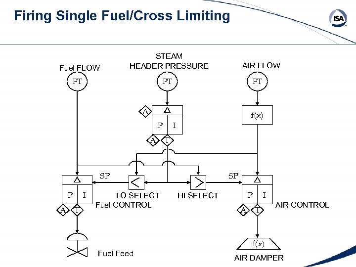 Firing Single Fuel/Cross Limiting Fuel FLOW STEAM HEADER PRESSURE FT PT AIR FLOW FT A f(x) P A I T SP P A I T LO SELECT Fuel CONTROL SP P HI SELECT A I T AIR CONTROL f(x) Fuel Feed AIR DAMPER