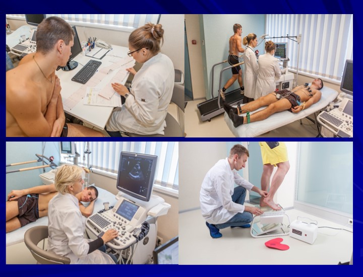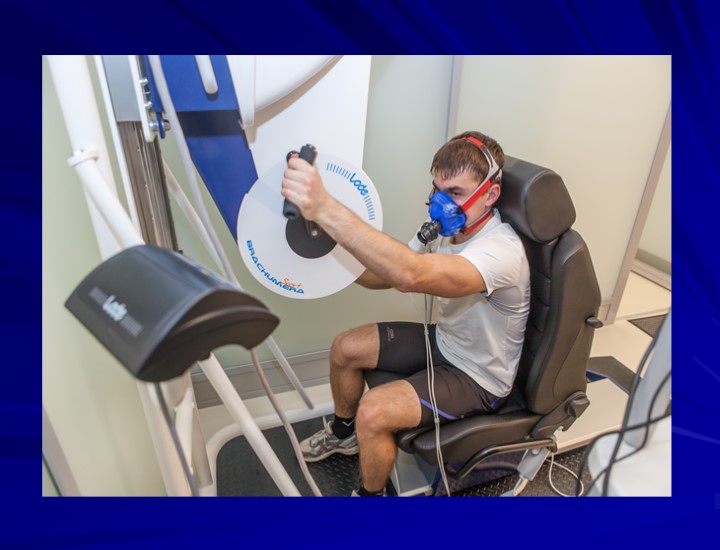Многоуровневая система функционального тестирования спортсменов 1. Антропометрия: антропометры, весы, денситометр. 2. Оценка аэробной работоспособности с определением функциональных параметров ССС спортсменов (МПК, АП, ПАНО) 3. Оценка анаэробной работоспособности спортсменов (тест МАМ); 4. Оценка скоростно-силовых характеристик отдельных мышечных групп (динамометр Biodex); 5. Психофизиологическое тестирование(НС психотест, Нейрософт). 6. Психологическое тестирование (НС психотест, Нейрософт). 7. Иммуно-биохимическое тестирование 8. Медико-генетическое тестирование.