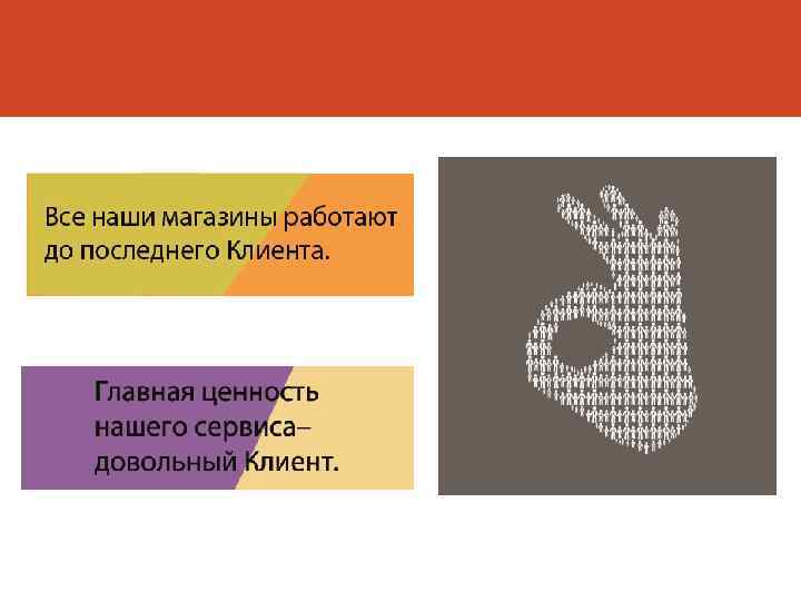 Вредные советы 1. 2. 3. 4. 5. Спорь с Клиентом; Собирайся и разговаривай с коллегами на отвлеченные темы при Клиентах; Обсуждай вкусы Клиентов; Груби Клиентам; Используй в начале продажи закрытые вопросы «Вам что-то подсказать? » , «Вам чем-нибудь помочь? » , «Ищете что-нибудь конкретное? » ; 6. Принимай пищу, жуй жевательную резинку в торговом зале; 7. Пользуйся личным мобильным телефоном, находясь в торговом зале; 8. Употребляй слова паразиты «как бы» , «типа» , «короче» , «так сказать» ; 9. Рекомендуй Клиентам конкурентов; 10. Употребляй при работе с Клиентом слова и фразы с негативной окраской, такие, как «Не знаю» , «Не получится» , «Позвоните как-нибудь потом» , «Не можем» , «Это не в наших силах» и т. д. ;