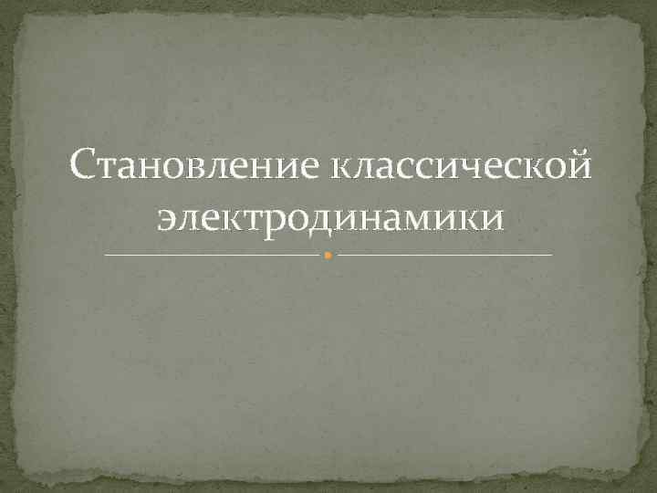 Становление классической электродинамики