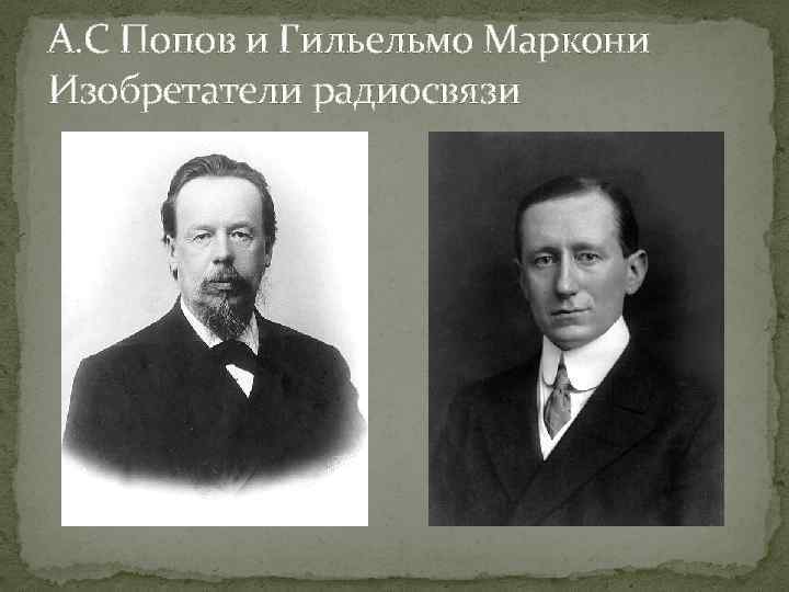 А. С Попов и Гильельмо Маркони Изобретатели радиосвязи