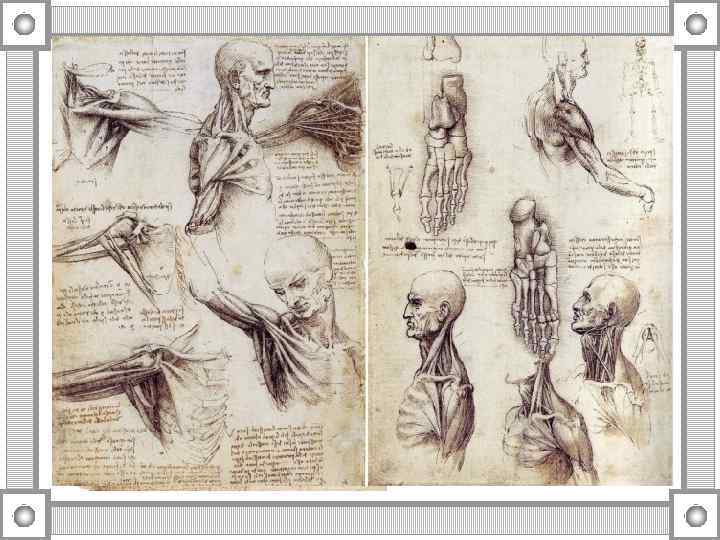 Леонардо да Винчи 1452 -1519 -Впервые изображал на своих рисунках различные органы -Описал строение скелета человека -Классифицировал мышцы