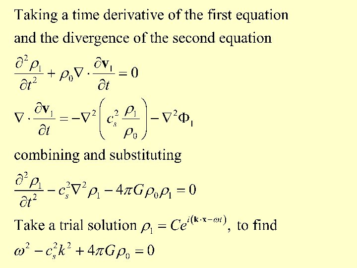 Jeans instability • Jeans swindle: in homogeneous medium – – not generally true, but usually justified • Linearize equations of motion for this medium