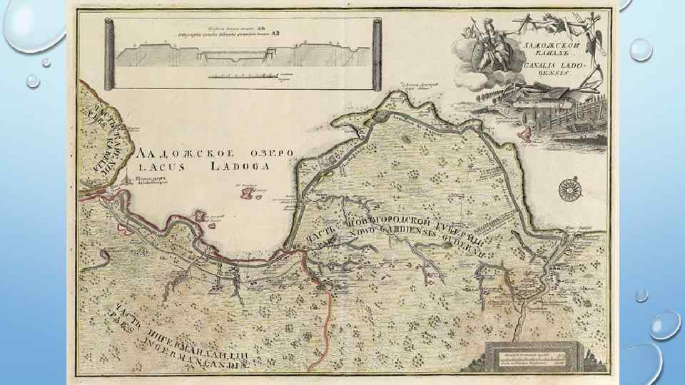 ПРИЧИНА СОЗДАНИЯ • ЖЕЛАНИЕ ЦАРЯ ПЕТРА ТОРГОВАТЬ С ЕВРОПОЙ ПО БАЛТИКЕ ТРЕБОВАЛО РАСШИРЕНИЯ ПУТЕЙ СООБЩЕНИЯ, ОСОБЕННО ВОДНЫХ. • ОДИН ИЗ УЧАСТКОВ ВЫШНЕВОЛОЦКОГО ВОДНОГО ПУТИ, СОЕДИНЯЮЩЕГО ВОЛГУ С БАЛТИЙСКИМ МОРЕМ, ПРОХОДИЛ ЧЕРЕЗ ЛАДОЖСКОЕ ОЗЕРО, НО ЭТОТ УЧАСТОК ЯВЛЯЛСЯ ОДНИМ ИЗ САМЫХ ТРУДНЫХ И ОПАСНЫХ: ЧАСТЫЕ ШТОРМОВЫЕ ВЕТРА НА ОЗЕРЕ СТАЛИ ПРИЧИНОЙ ГИБЕЛИ СОТЕН КОРАБЛЕЙ С ГРУЗОМ. (В УКАЗЕ ОТ 18 НОЯБРЯ 1718 ГОДА ПЕТРА I СКАЗАНО: «КАКОЙ ВЕЛИКИЙ УБЫТОК НА ВСЯ ГОДЫ ЧИНИТСЯ НА ЛАДОЖСКОМ ОЗЕРЕ ОТ ХУДЫХ СУДОВ, И ЧТО ОДНИМ СИМ ЛЕТОМ С ТЫСЯЧУ СУДОВ ПРОПАЛО…» . )