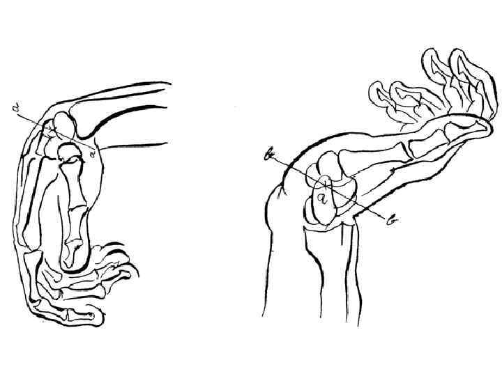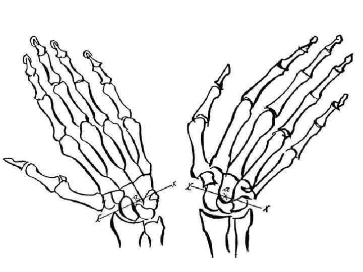 Движения в суставе кисти • вокруг фронтальной оси flexio - 60 -70°, extensio - до 45° • вокруг сагиттальной оси adductio - 35 -40°, abductio - 20° • circumductio