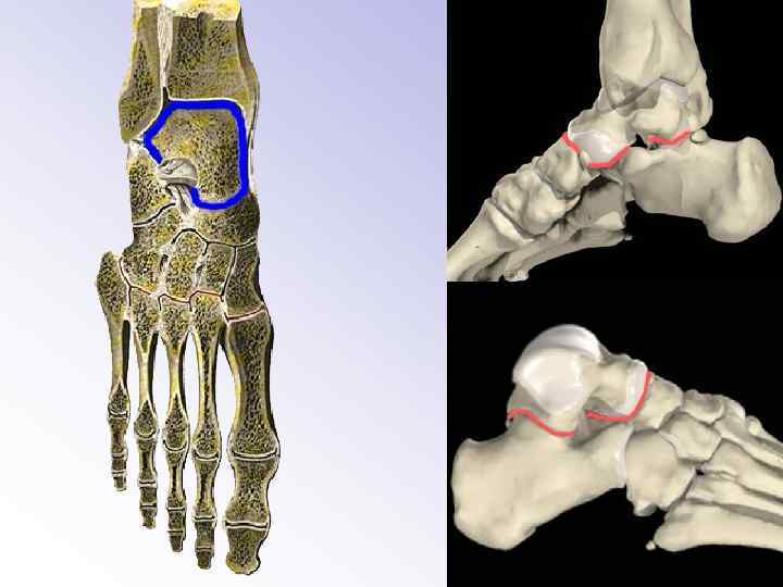 Сустав стопы, articulatio pedis комплексный сустав (art. complexa), который составлен из: 1 – art. talocruralis 2 – art. talocalcanonavicularis 3 – art. subtalaris Talus в этом случае является костным мениском