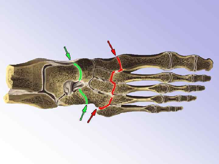 А. Поперечные своды стопы проводятся: - через соединение поперечного сустава (проксимальный)