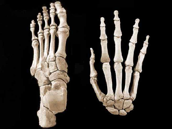Нижняя конечность (отличия): Локомоторная функция реализовалась в появлении продольных и поперечных сводов стопы как результата влияния мышц, определяющих перенос точек опоры при переходе к локомоции и в процессе локомоции