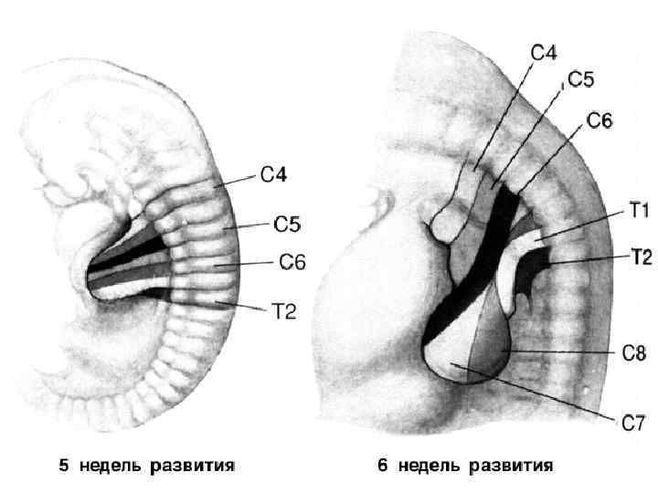 Верхняя конечность формируется на уровне последних четырех шейных сегментов (С 5 -С 8) и первого грудного сегмента (Th 1)