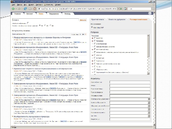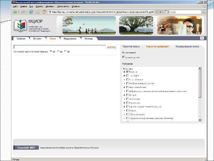 Поиск по порталу простой поиск, поиск по рубрикам, расширенный поиска
