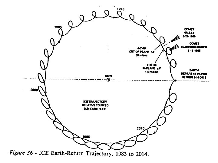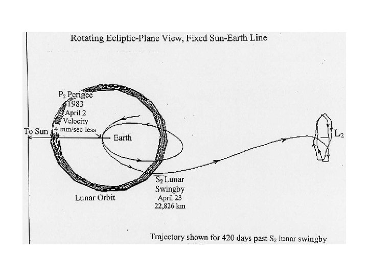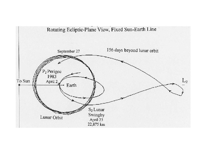 International Sun-Earth Explorer 3/ International Cometary Explorer • • First Libration-Point Mission Finding a Way to Giacobini-Zinner – Double Lunar Swingby Orbits Printer Plots of the trajectories An Unused Trajectory to L 2 September 11, 1985 – the first comet flyby Earth return in 2014 – more than halfway