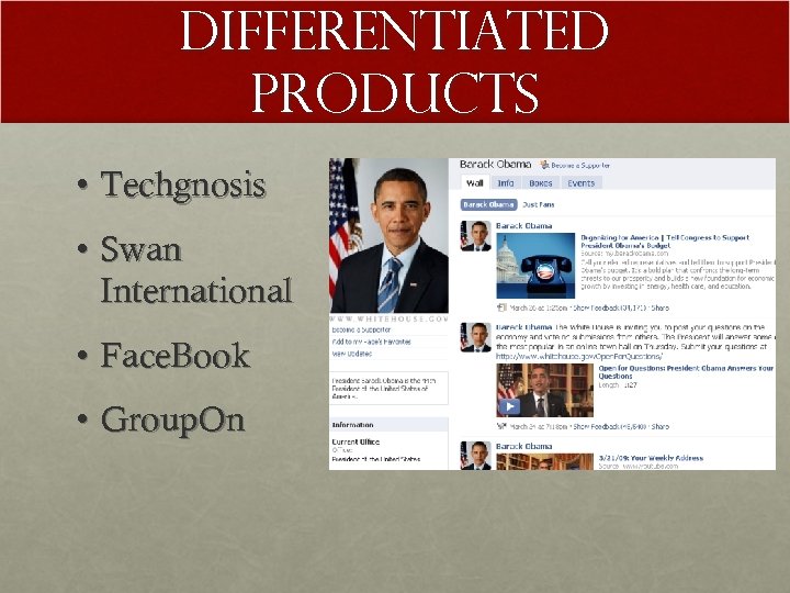 Differentiated Products • Techgnosis • Swan International • Face. Book • Group. On